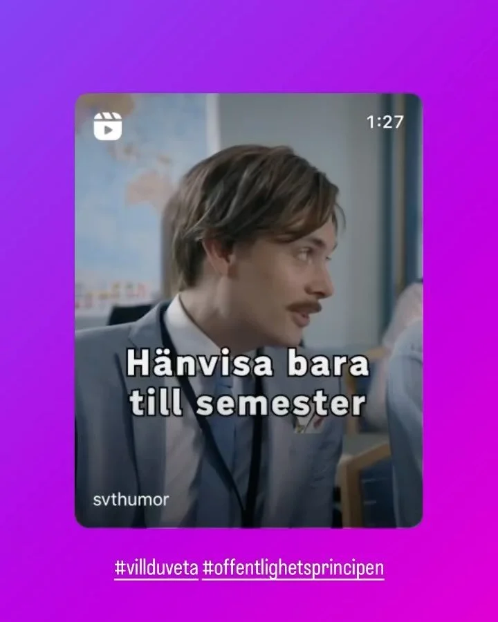 Det långa ordet, ja just precis – offentlighetsprincipen, är en grundsten för hela den svenska demokratin. Den är unik! Hur då? Jo det är just offentlighetsprincipen som ger dig kunskap och information om din vardag, dina skattepengar, ditt närområde och landet som du bor i. Det är endast tack vare offentlighetsprincipen som du kan få insyn i och kunskap om arbetet som sker hos Sveriges 342 statliga myndigheter. Just kunskap och information är en förutsättning för att inte bara ta beslut – utan bra beslut. Att värna denna princip är därför att värna om demokratin och dina rättigheter som medborgare. #villduveta